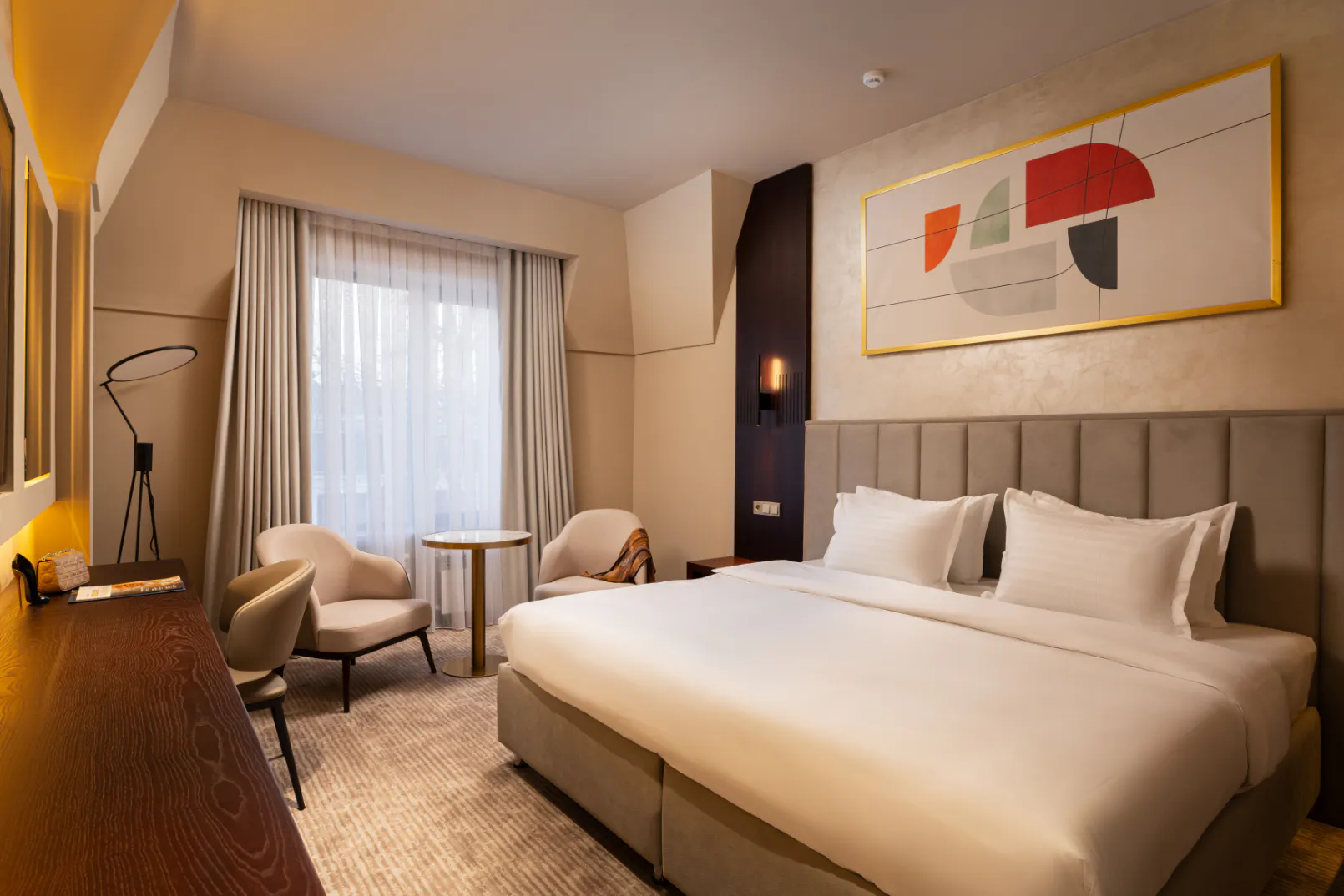 Ощутите комфорт и элегантность нашего двухместного номера с 1 кроватью или 2 отдельными кроватями, из которого открывается вид на умиротворяющую загородную местность или внутренний двор. Каждый номер, продуманно спроектированный для комфортного отдыха, оснащен кондиционером с индивидуальным управлением, высокоскоростным Wi-Fi и Smart TV. К вашим услугам собственная ванная комната с туалетными принадлежностями премиум-класса, мягкими полотенцами и тапочками, а также мини-бар, сейф, рабочий стол и ежедневная уборка. Гости также могут посещать бассейн и пользоваться круглосуточным обслуживанием в помещении для некурящих.